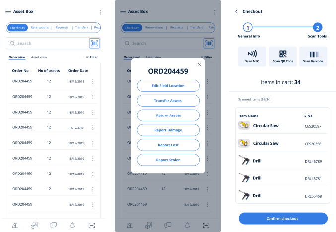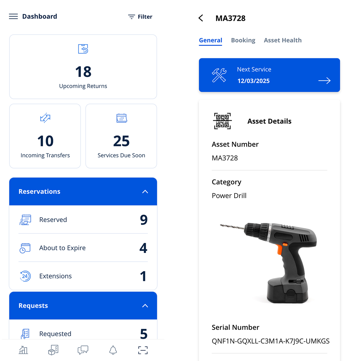 Seamlessly onboard and manage assets using integrated NFC tags and QR codes — from deployment to field check-outs.